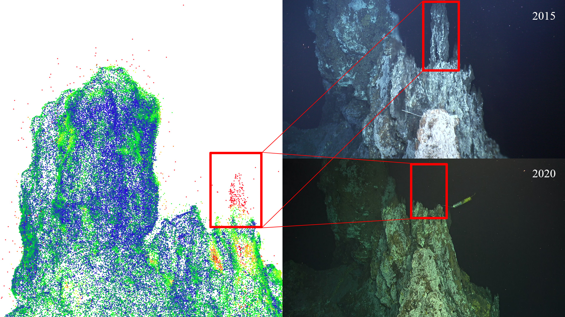 Eiffel Tower is a new deep-sea dataset to benchmark underwater long-term visual localization. The dataset is composed of images from four visits to the same hydrothermal vent edifice over the course of five years. Camera poses and a common geometry of the scene were estimated using navigation data and Structure-from-Motion. This serves as a reference when evaluating visual localization techniques. An analysis of the data provides insights about the major changes observed throughout the years. We have evaluated several well-established visual localization methods on the dataset, showing there is still room for improvement in underwater long-term visual localization.